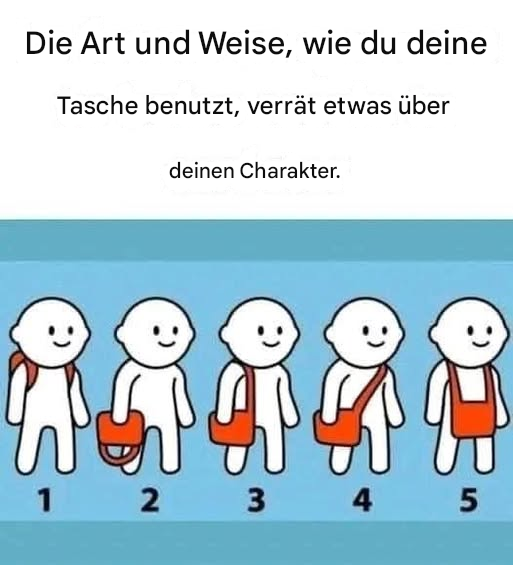 2. Wenn Sie gerne einen Rucksack tragen: Vermeiden Sie normalerweise Handtaschen? Bevorzugen Sie Rucksäcke? Sie sind definitiv jemand, der immer bereit ist, sich unerwarteten Ereignissen zu stellen. Sie lieben wahrscheinlich auch Abenteuer (besonders Überraschungen). Ihre Weitsicht hat Sie möglicherweise zu einer Führungspersönlichkeit im sozialen Bereich oder im Beruf gemacht.